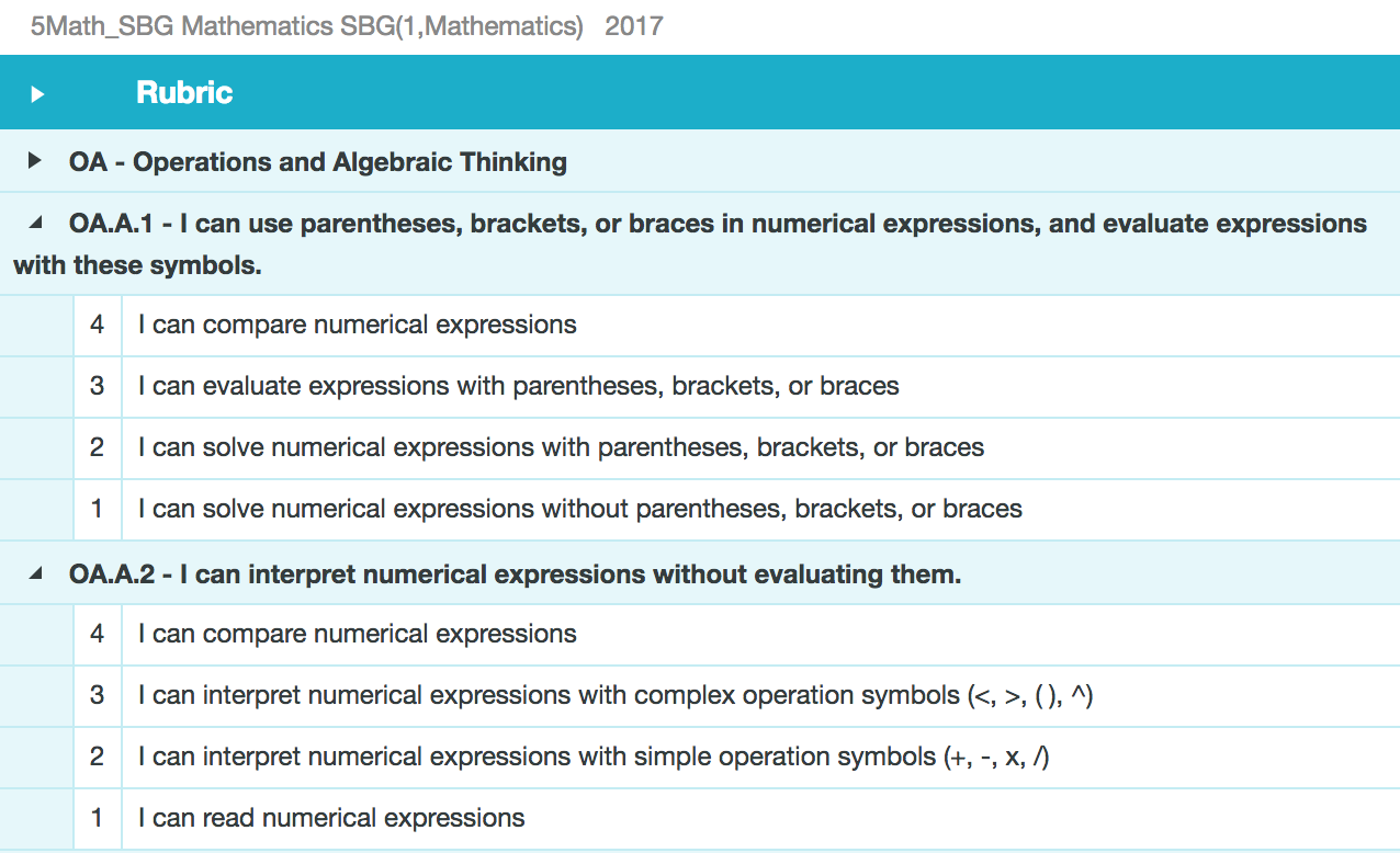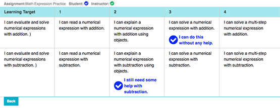 Rubrics can be viewed by students and parents on the online portal. This allows them to understand the purpose of instruction. They can also follow the cognitive steps in the learning progression leading toward mastery.